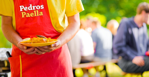 Und das zu jeder Jahreszeit: Brenner, Pfannen – wir bringen alles mit! Und gegen Aufpreis: Geschirr, Besteck, Gläser, Zelt und spanische Live-Musik (Mehr über Paella)